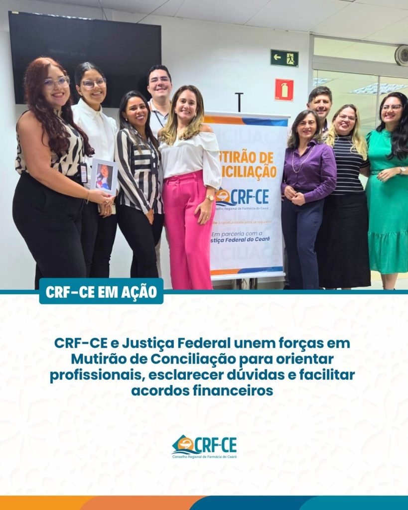 O Conselho Regional de Farmácia do Ceará (CRF-CE), em parceria com a Justiça Federal do Ceará, promoveu, entre os dias 25 e 27 de junho de 2025, o Mutirão de Conciliação, iniciativa voltada para a resolução de pendências financeiras de forma ágil, eficiente e consensual, beneficiando farmacêuticos, técnicos e empresas que buscaram regularizar sua situação junto ao Conselho, evitando a judicialização de débitos.