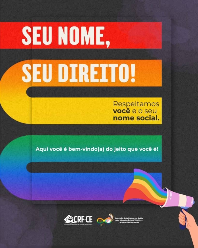 O CRF-CE através de sua Comissão de Cuidados em Saúde para Populações Vulnerabilizadas reforça que aqui você é bem-vindo(a) do jeito que você é! Respeitamos você e o seu nome social!
