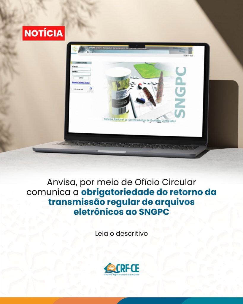 A Agência Nacional de Vigilância Sanitária (Anvisa), por meio do Ofício Circular nº 9/2025/SEI/GPCON/DIRE5/ANVISA, comunicou aos Conselhos Regionais de Farmácia a obrigatoriedade do retorno da transmissão regular de arquivos eletrônicos (XML) ao Sistema Nacional de Gerenciamento de Produtos Controlados (SNGPC).