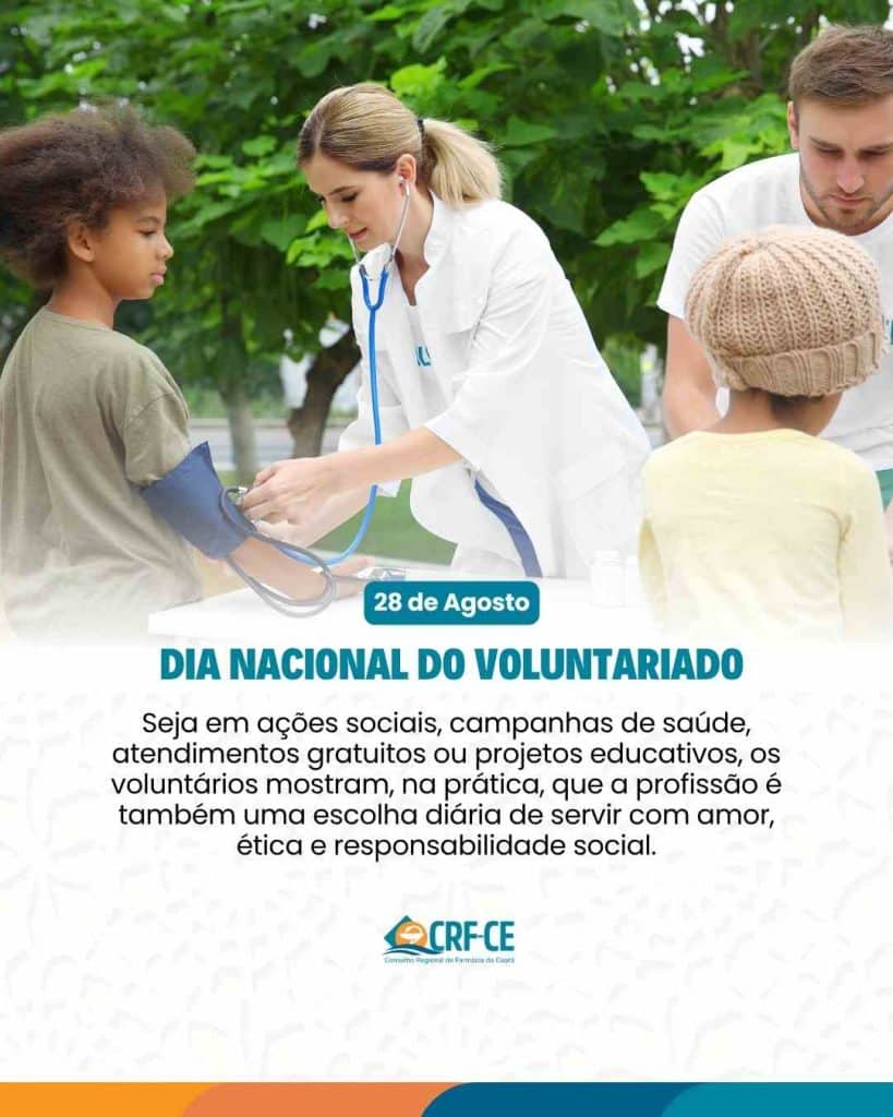 Neste Dia Nacional do Voluntariado, o CRF-CE reconhece e valoriza a dedicação dos farmacêuticos, membros das comissões e técnicos em Análises Clínicas que, com compromisso e empatia, doam seu tempo, conhecimento e cuidado para transformar vidas e comunidades.