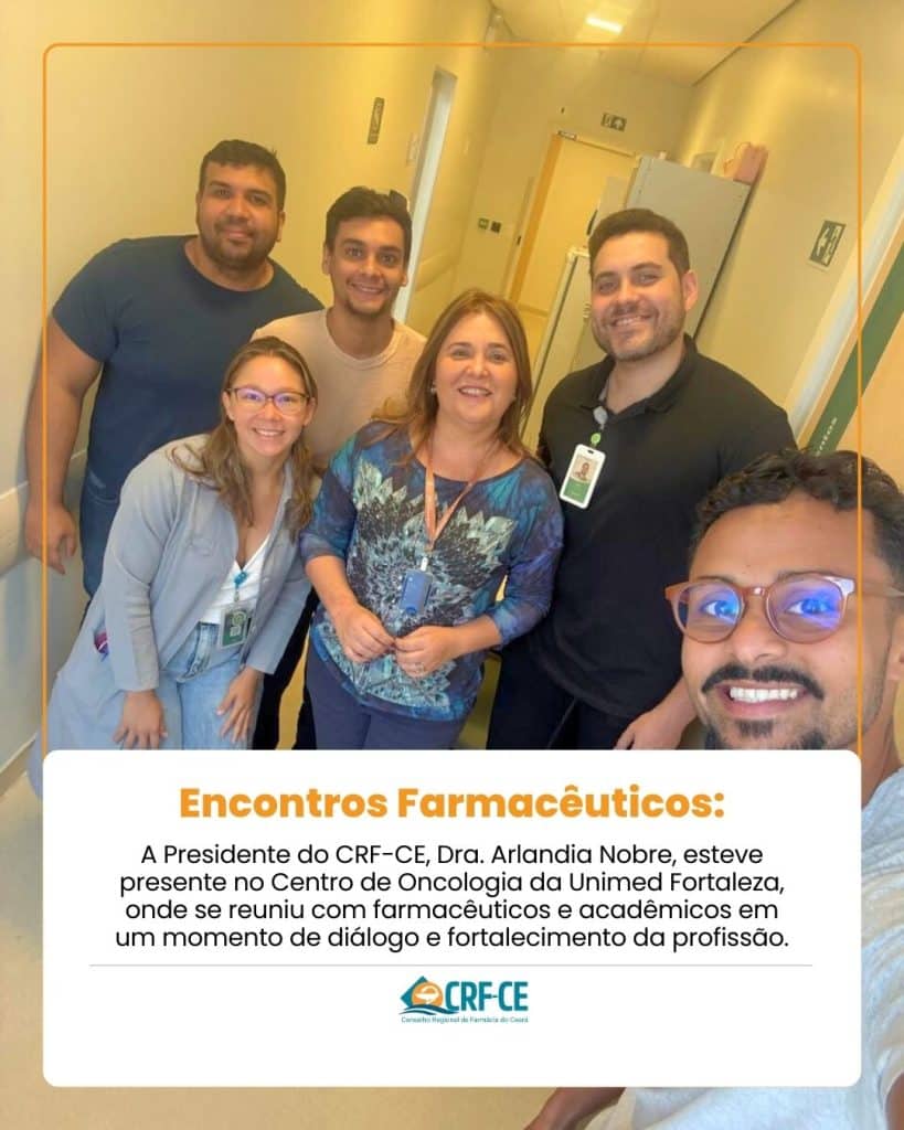 Encontros Farmacêuticos – A Presidente do CRF-CE, Dra. Arlandia Nobre, esteve presente no Centro de Oncologia da Unimed Fortaleza, onde se reuniu com farmacêuticos e acadêmicos em um momento de diálogo e fortalecimento da profissão.
