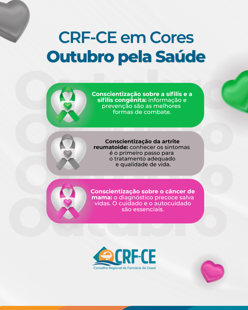 Outubro é um mês especial para a conscientização em saúde, e o CRF-CE em Cores traz três importantes campanhas que merecem a nossa atenção: