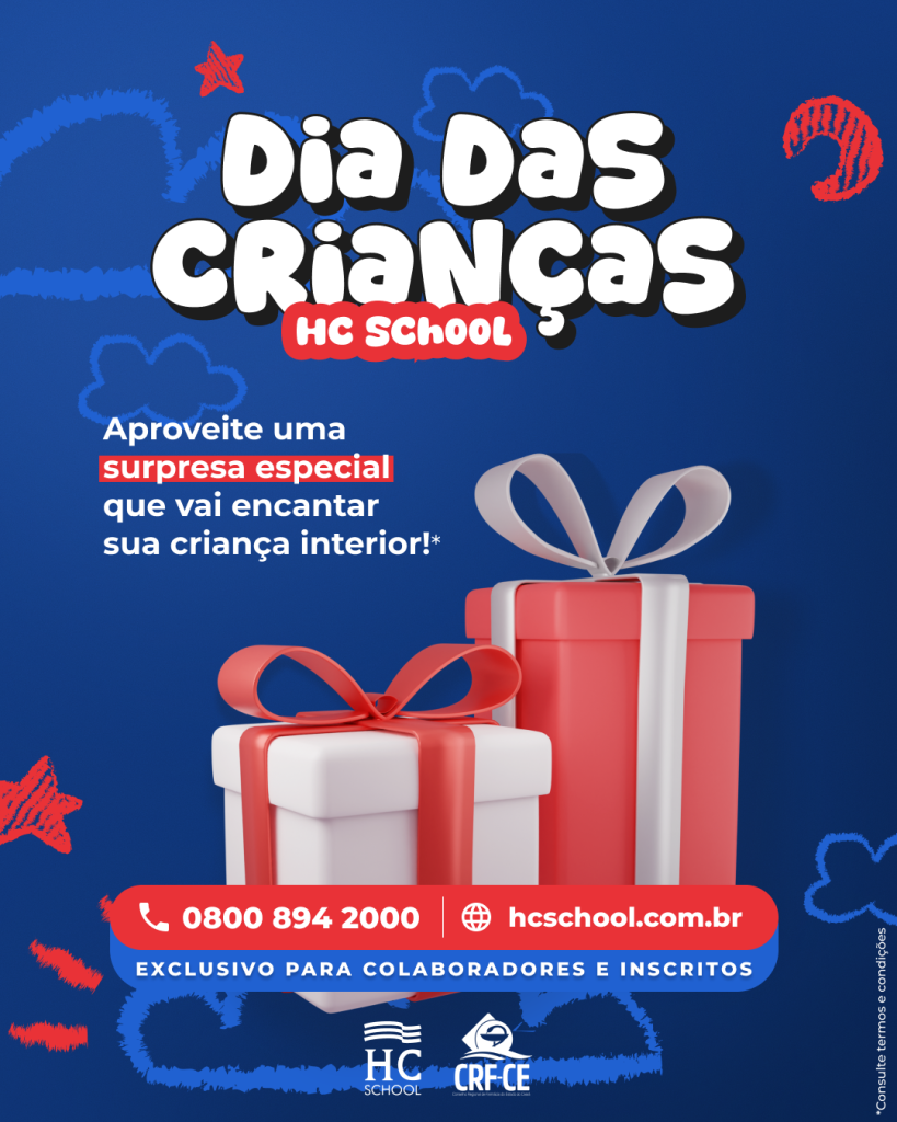 “Neste Dia das Crianças, a HC School preparou algo único: uma condição especial para todos os novos alunos. E para os pequenos, além dessa oportunidade incrível, tem também um brinquedo surpresa que vai deixar a experiência ainda mais divertida e inesquecível”