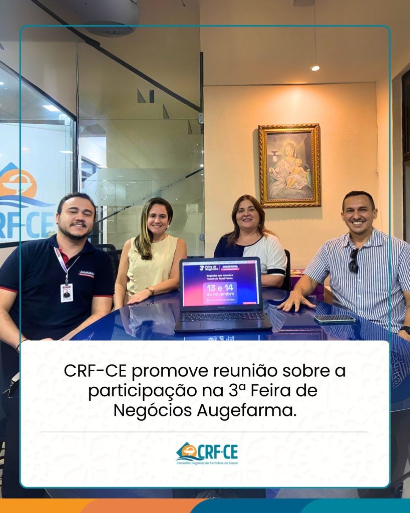 Na segunda-feira, 06 de outubro, o Conselho Regional de Farmácia do Ceará (CRF-CE) realizou uma reunião para alinhar e consolidar a parceria institucional com a Augefarma, voltada à promoção da 3ª Feira de Negócios. O encontro teve como objetivo fortalecer a cooperação entre as instituições e definir a participação do CRF-CE no evento, que promete reunir importantes representantes do setor farmacêutico.
