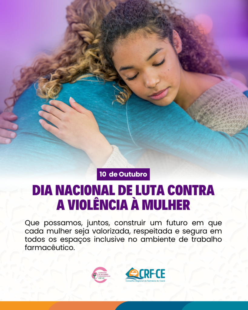O Conselho Regional de Farmácia do Ceará, por meio da Comissão Assessora da Mulher Farmacêutica, reforça seu compromisso em apoiar, dar visibilidade e fortalecer a luta contra todas as formas de violência que atingem mulheres em nossa sociedade.