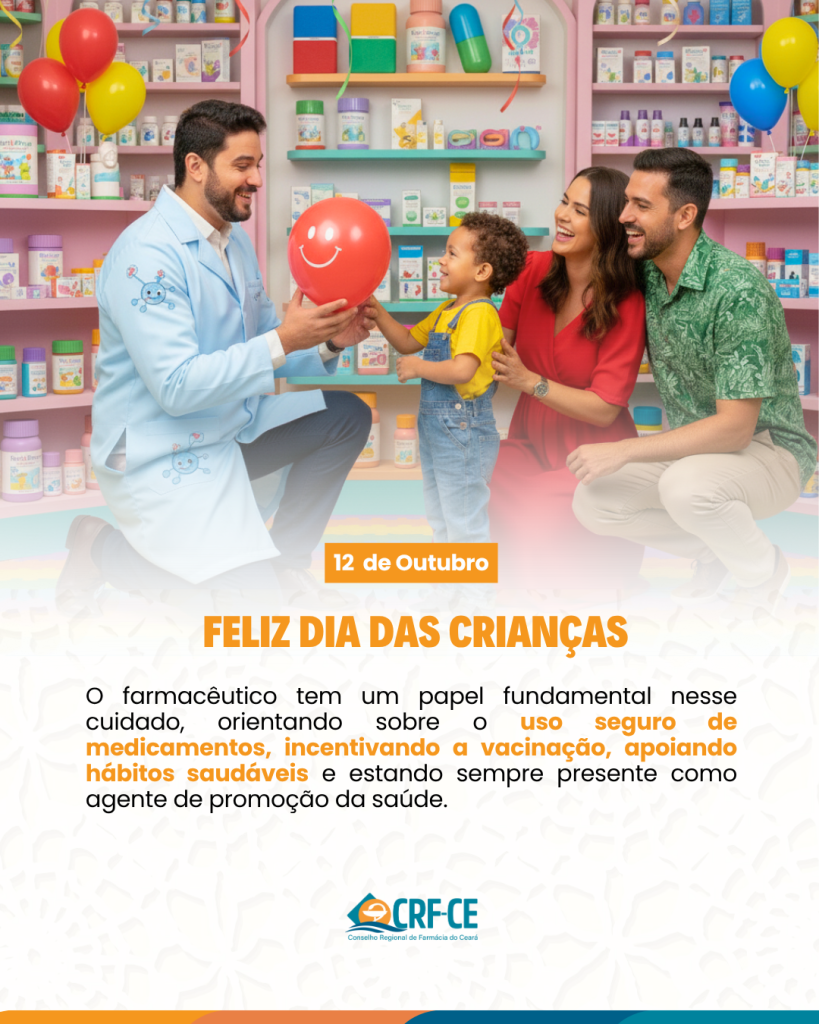 Neste Dia das Crianças, o CRF-CE reforça seu compromisso em valorizar o cuidado integral e responsável, para que cada infância seja vivida com saúde, segurança e muito carinho.