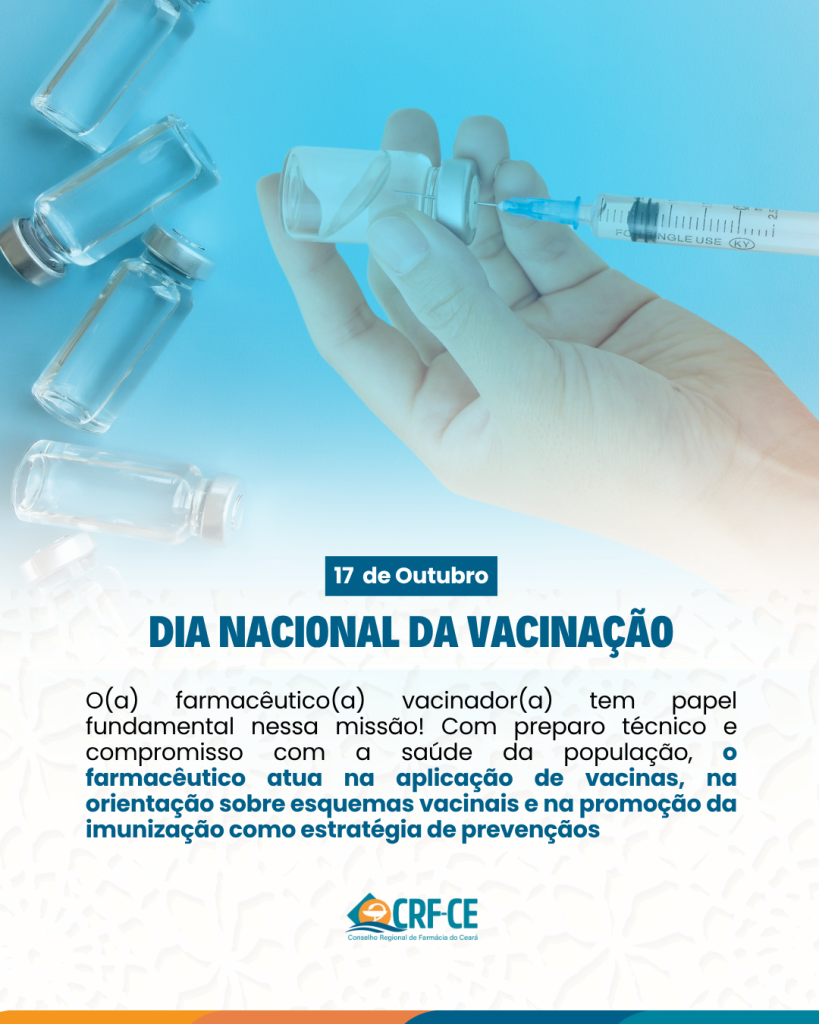 Hoje, o CRF-CE celebra a importância da vacinação e valoriza todos os farmacêuticos vacinadores que estão na linha de frente desse cuidado.