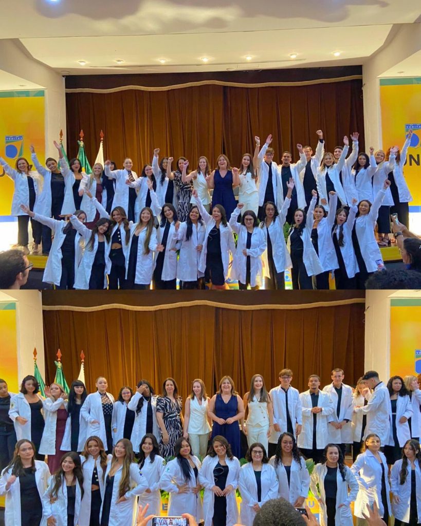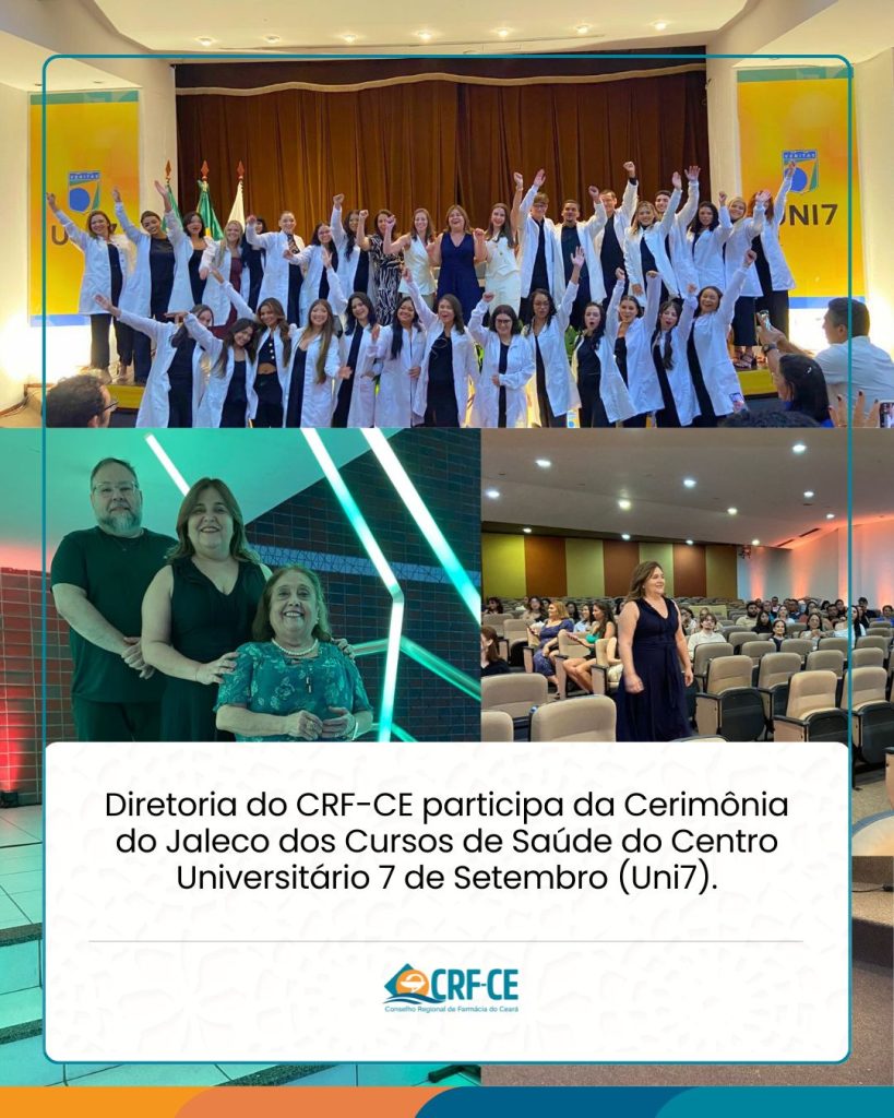 No dia 16 de outubro, a Diretoria do Conselho Regional de Farmácia do Estado do Ceará (CRF-CE) participou da Cerimônia do Jaleco dos Cursos de Saúde do Centro Universitário 7 de Setembro (Uni7). O evento celebrou um marco significativo na trajetória acadêmica dos estudantes, representando o início simbólico da caminhada profissional.