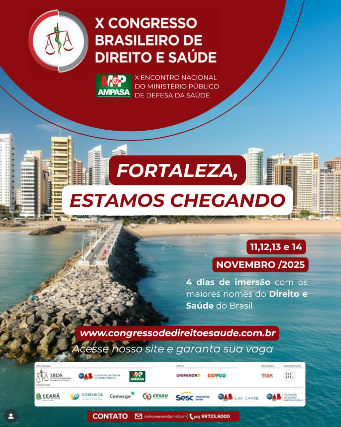 De 11 a 14 de novembro de 2025, o X Congresso Brasileiro de Direito e Saúde reunirá, na capital cearense, os mais renomados especialistas do país para quatro dias de conhecimento, networking e debates de alto nível.