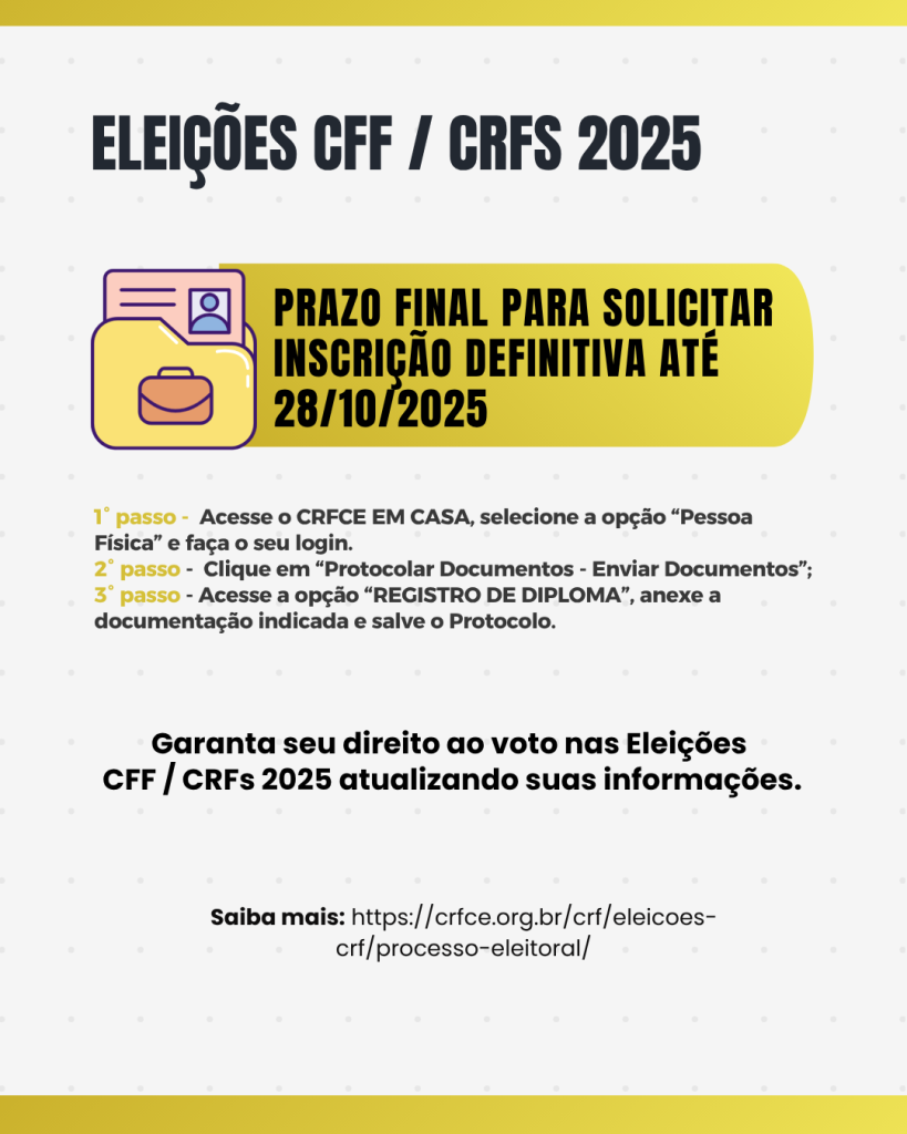 Garanta seu direito ao voto nas Eleições CFF / CRFs 2025 atualizando suas informações.