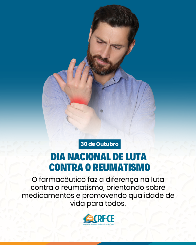 Neste dia, reforçamos o compromisso do farmacêutico em apoiar, orientar e cuidar de quem vive com reumatismo, promovendo saúde, bem-estar e qualidade de vida.