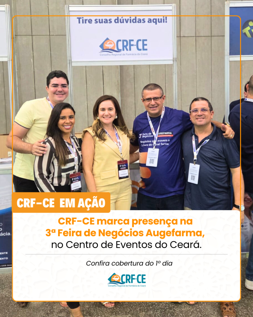 O Conselho Regional de Farmácia do Estado do Ceará (CRF-CE) está presente na 3ª edição da Feira de Negócios Augefarma, realizada nos dias 13 e 14 de novembro de 2025, no Centro de Eventos do Ceará, em Fortaleza. A abertura oficial contou com a participação do Dr. Marcelo Linhares, Secretário-Geral do CRF-CE, representando a instituição neste importante momento para o setor farmacêutico.