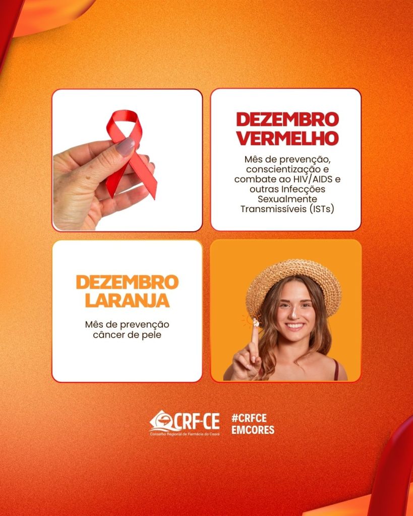 Dezembro Laranja – A campanha chama atenção para os riscos do câncer de pele. O farmacêutico pode orientar a população sobre o uso correto do protetor solar, a importância dos autoexames e a necessidade de procurar um dermatologista para avaliações periódicas. Prevenção também é cuidado diário.
