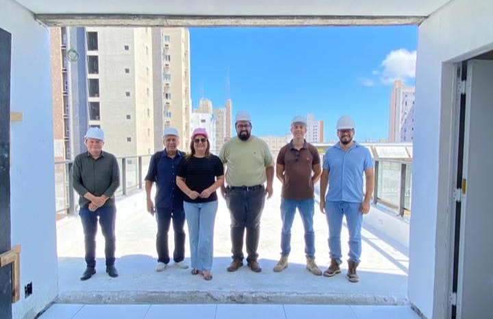 Na quarta-feira, 10 de dezembro de 2025, a Presidente do Conselho Regional de Farmácia do Ceará (CRF-CE), Dra. Arlandia Nobre, realizou visita técnica às obras da nova sede da instituição. A agenda contou com a presença do Assessor de Licitação, Sr. Emirton Ferreira; do arquiteto Jefferson John Lima da Silva; do engenheiro responsável, Klinsmann M. de Oliveira; do Presidente do Instituto de Arquitetos do Brasil (IAB), Odilio Almeida; e do fiscal da obra, Yuri Mesquita.