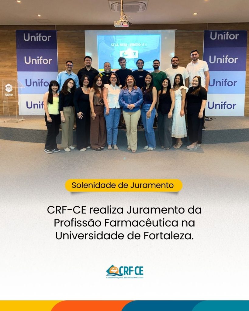 O Conselho Regional de Farmácia do Ceará (CRF-CE) realizou, no dia 08 de janeiro de 2026, a Solenidade de Juramento da Profissão Farmacêutica na Universidade de Fortaleza (Unifor), marcando um momento de grande significado para os novos profissionais que ingressam oficialmente na área farmacêutica.