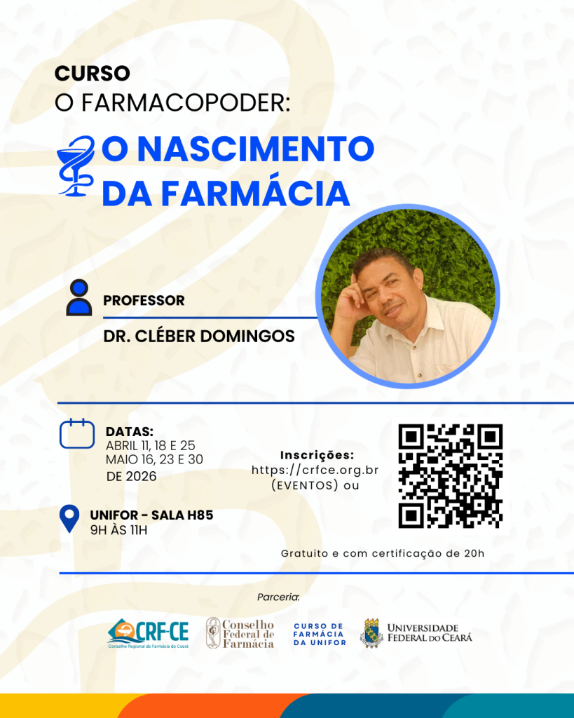 Com carga horária de 20 horas/aula e certificação expedida pela UFC, o curso busca ampliar o olhar dos participantes sobre a farmácia, promovendo uma compreensão crítica do presente a partir das bases históricas, sociais, políticas e culturais que estruturam a profissão farmacêutica.