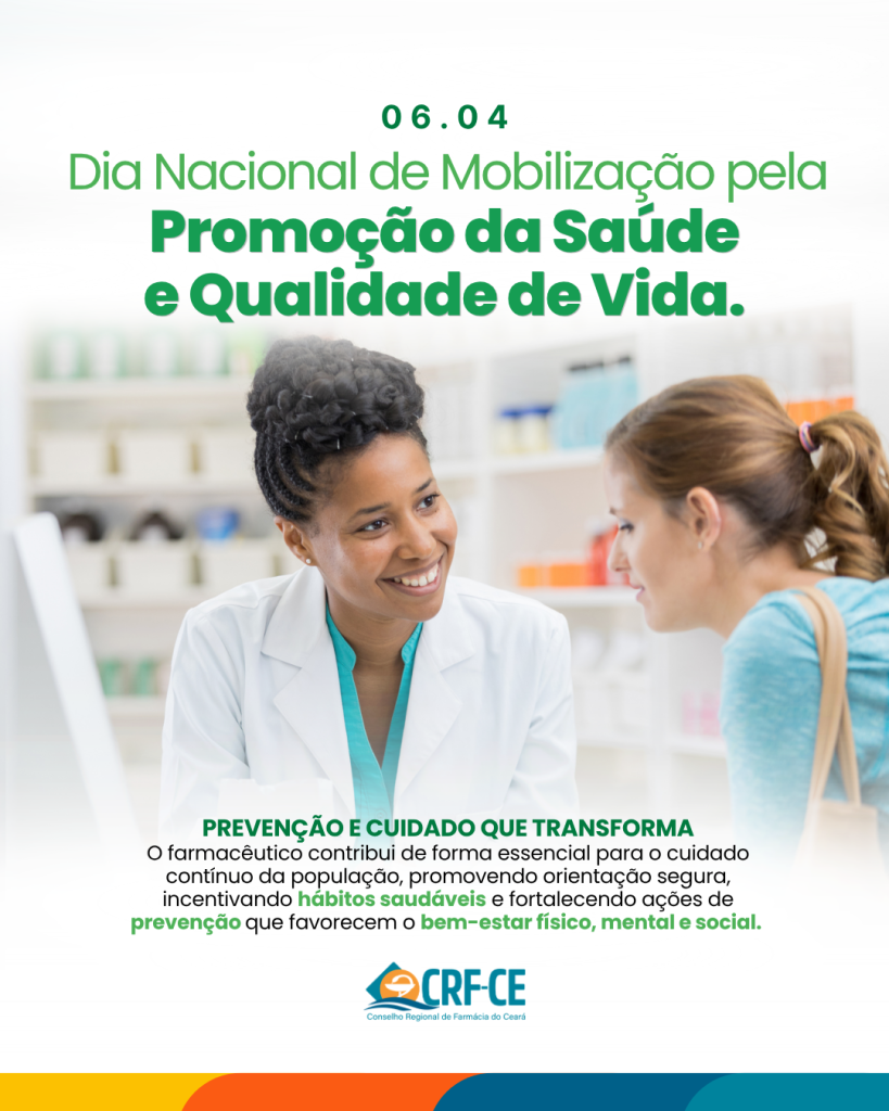 #PromoçãoDaSaúde #QualidadeDeVida #CalendárioDaSaúde #Farmacêutico #CuidadoFarmacêutico #Prevenção #Saúde #CRFCE