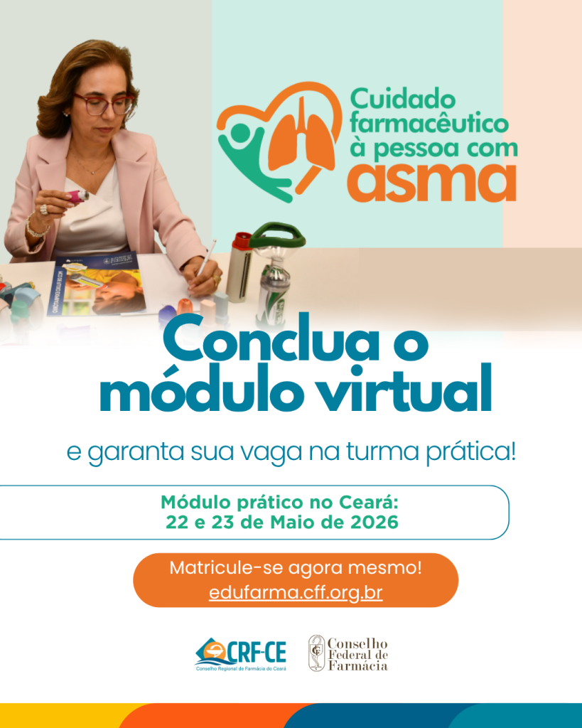 O Conselho Federal de Farmácia (CFF) e o Conselho Regional de Farmácia do Ceará (CRF-CE), por meio da plataforma Edu.farma, oferecem gratuitamente essa formação voltada para farmacêuticos e acadêmicos de Farmácia, com foco no fortalecimento da atuação clínica no cuidado às pessoas com asma.