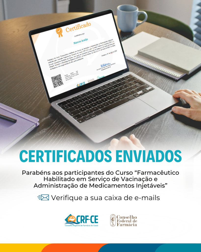 Certificados do curso “Farmacêutico Habilitado em Serviço de Vacinação e Administração de Medicamentos Injetáveis” já foram encaminhados aos participantes.