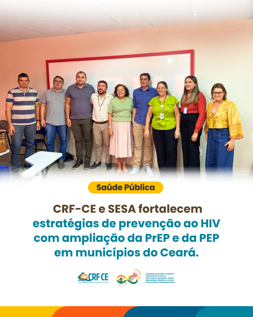 A Secretaria da Saúde do Estado do Ceará (Vigilância do HIV/AIDS e outras ISTs/Coordenadoria de Políticas de Assistência Farmacêutica – COPAF/SEAPS), em parceria com o CRF-CE, por meio da Comissão de Saúde e Cuidado Farmacêutico para a População LGBTQIAPN+, Povos Originários, Negros e Outras Populações Vulnerabilizadas e da Comissão Técnica de Assistência Farmacêutica que contam com a atuação dos membros Dr. Leandro Laurindo, Dr. Micael Nobre e Dr. Rangel Vinicius, intensificam, no mês de abril, a expansão das estratégias de Profilaxia Pré-Exposição (PrEP) e Profilaxia Pós-Exposição (PEP) ao HIV em todo o território estadual.