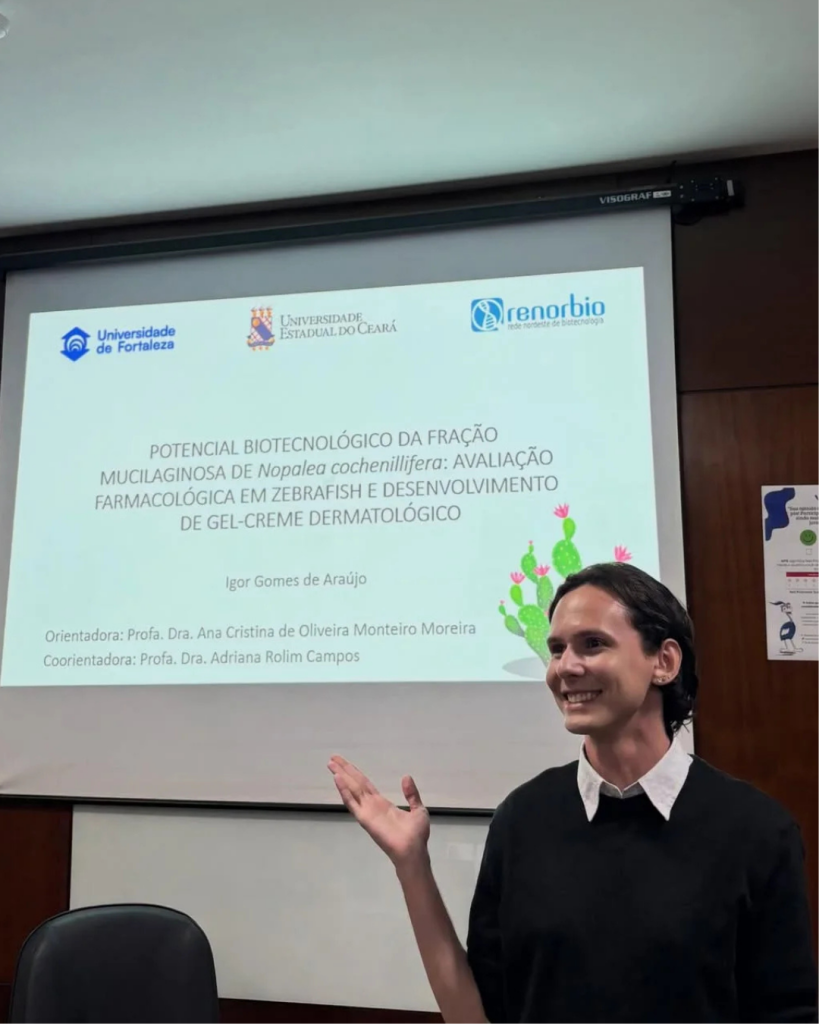 A tese, intitulada “Potencial biotecnológico da fração mucilaginosa de Nopalea cochenillifera: avaliação farmacológica em zebrafish e desenvolvimento de gel-creme dermatológico”, investigou as propriedades terapêuticas da mucilagem da palma forrageira, planta característica do semiárido nordestino.