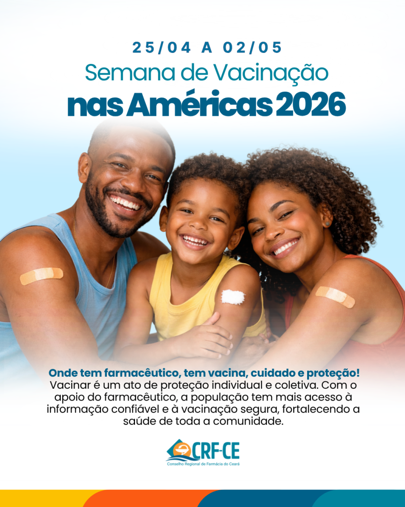 O CRF-CE reforça seu apoio à mobilização promovida pela Organização Pan-Americana da Saúde (OPAS), que chega à sua 24ª edição com o tema: “Sua decisão faz a diferença”. Imunização para todos.”